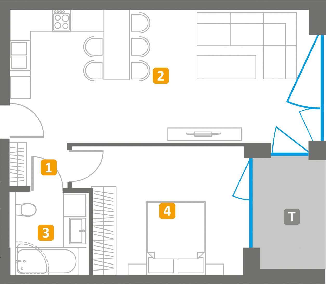 2. Salon z kuchnią