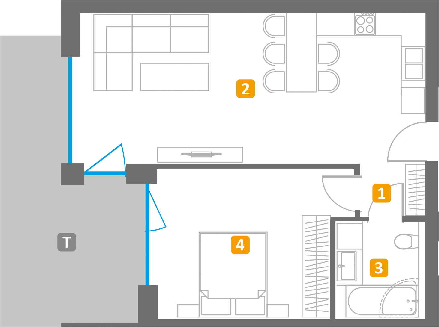 2. Salon z kuchnią